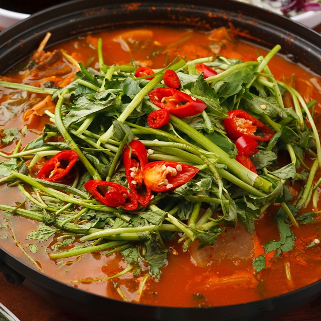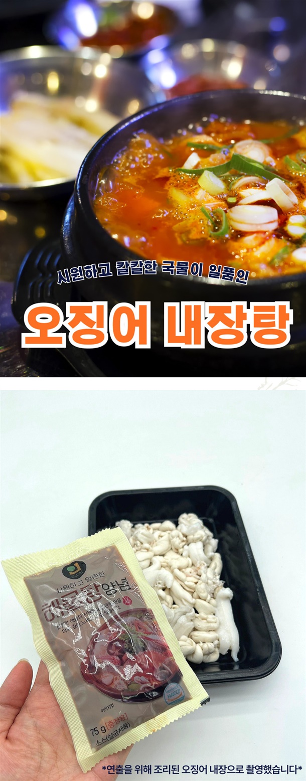 오징어 내장의 진한 풍미가 살아 있는 얼큰하고 깊은 맛의 내장탕