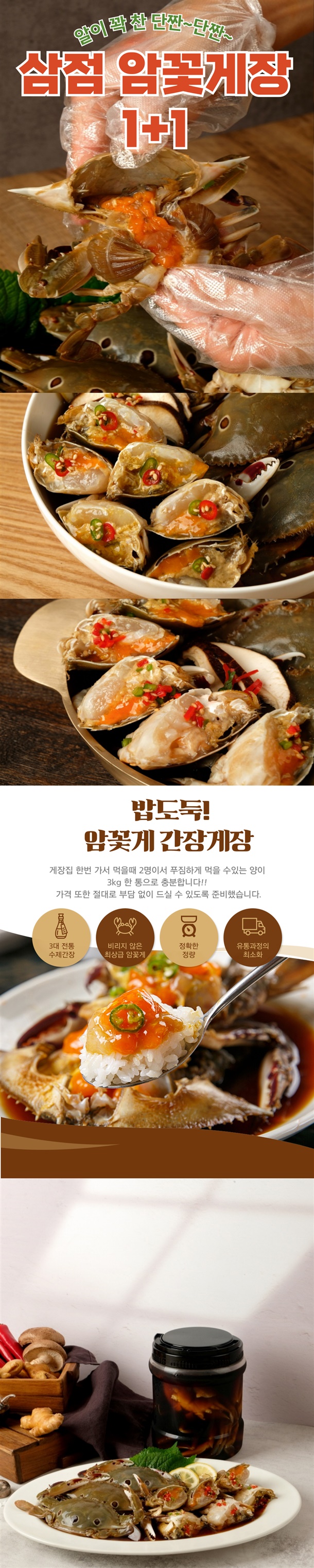 알이 꽉 찬 암꽃게로 담가 짭조름하고 깊은 감칠맛이 살아 있는 꽃게장