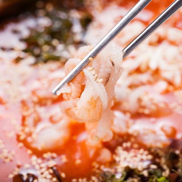 쫄깃한 갑오징어채와 시원한 육수가 어우러진 상큼한 물회