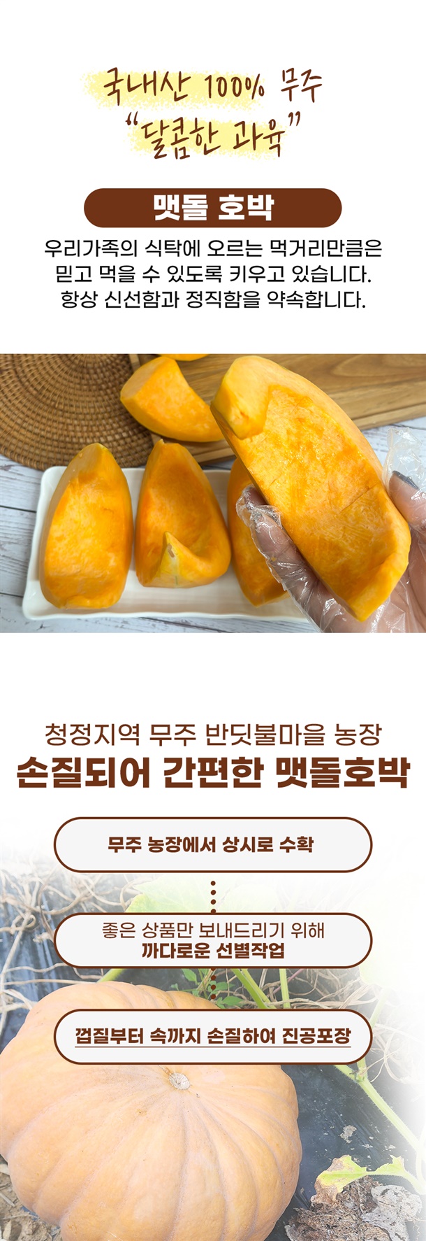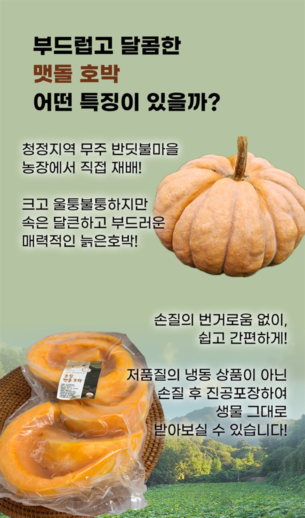 무주에서 자라 손질해 담백하고 부드럽게 즐기기 좋은 맷돌 호박