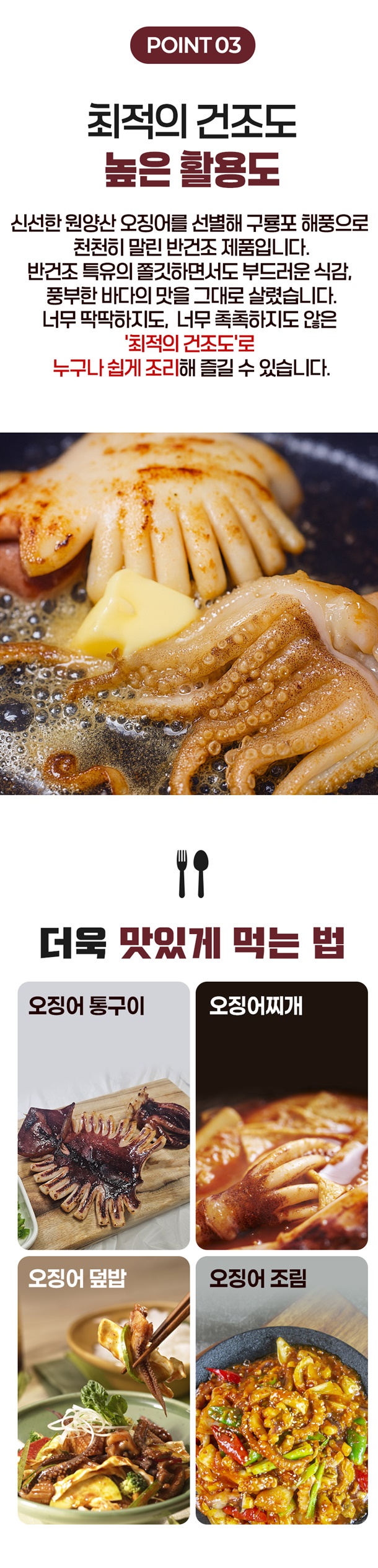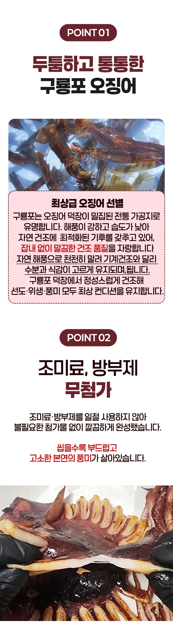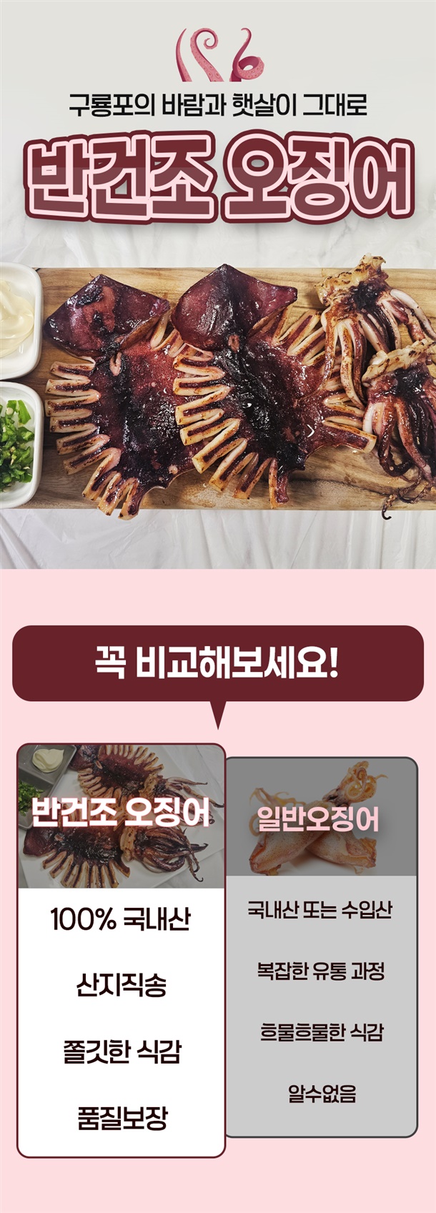 구룡포에서 반건조해 쫄깃한 식감과 깊은 감칠맛이 살아 있는 원양산 오징어
