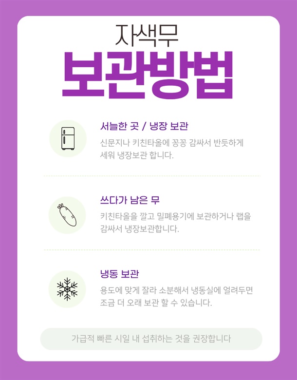 아삭한 식감과 은은한 단맛이 살아 있는 제주 자색무