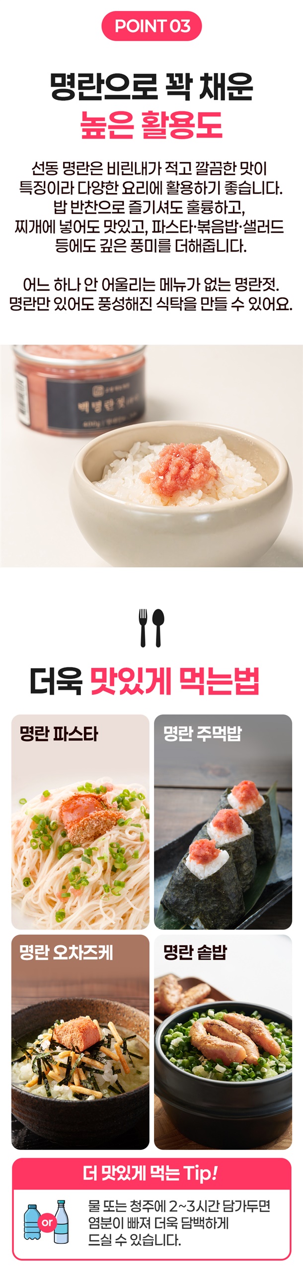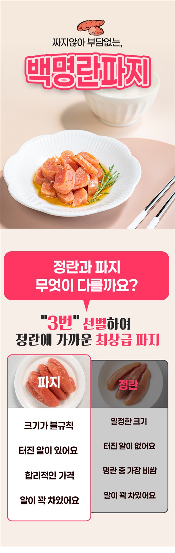 실속 있게 즐기기 좋은 짭조름하고 고소한 백명란 파지