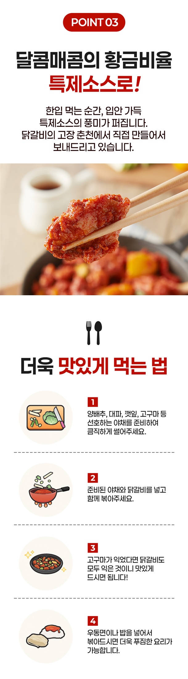 매콤한 양념과 쫄깃한 닭고기가 어우러진 풍미 가득한 닭갈비