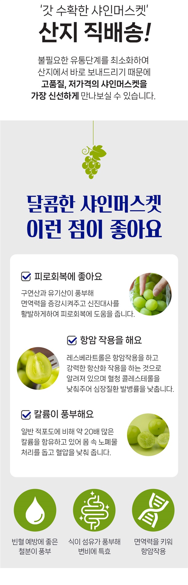 당도가 높고 과육이 단단해 달콤함이 가득한 고당도 샤인머스켓