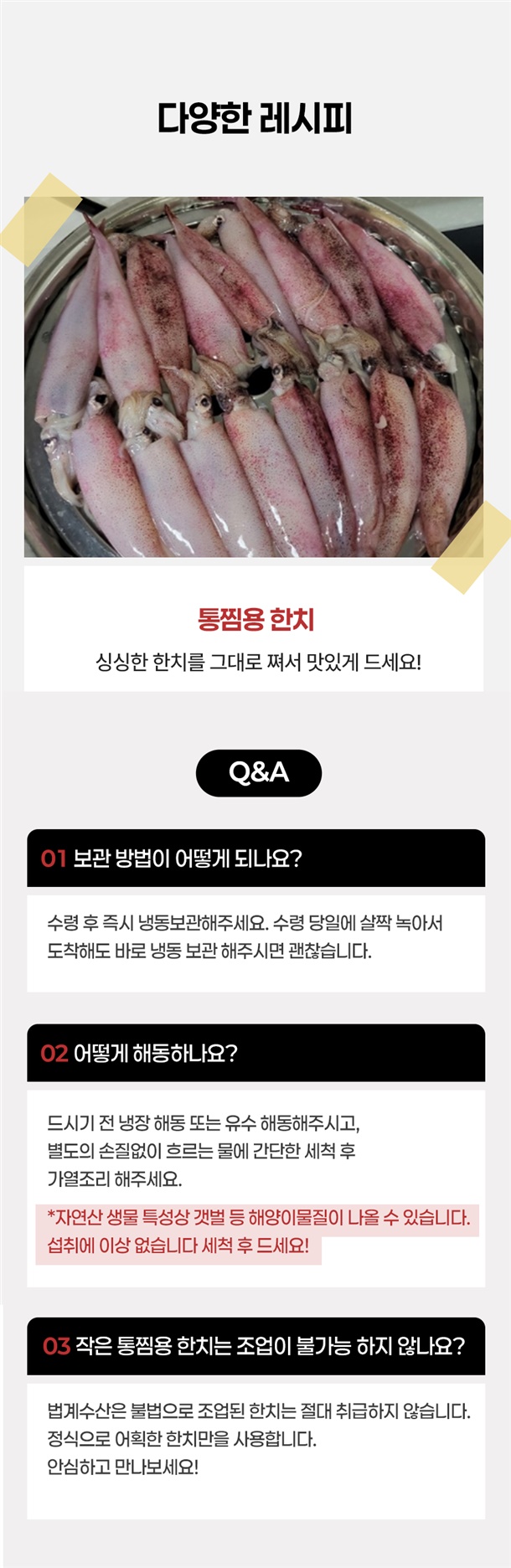 급속냉동해 쫄깃한 식감과 신선함을 살린 원양산 한입 한치