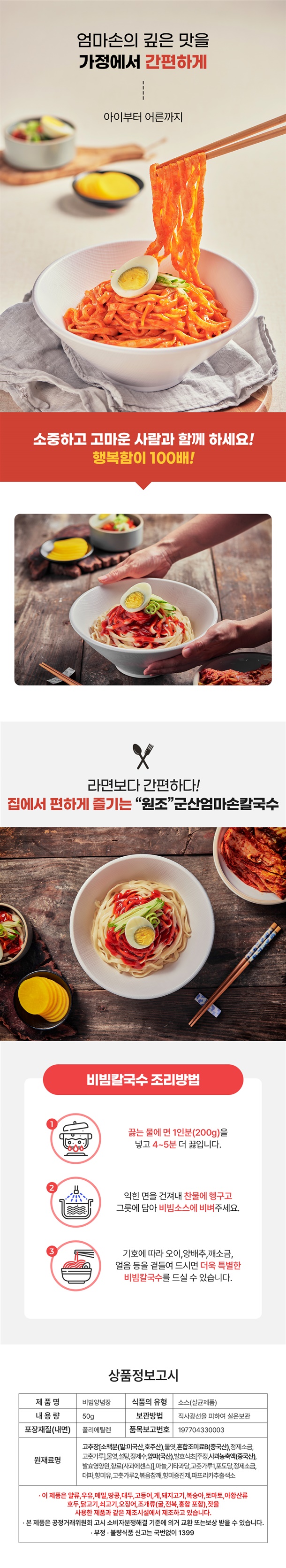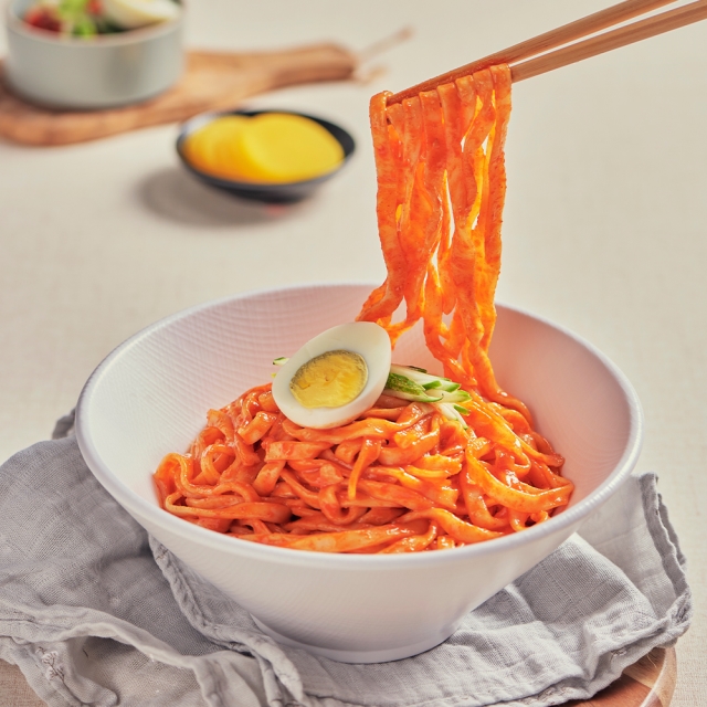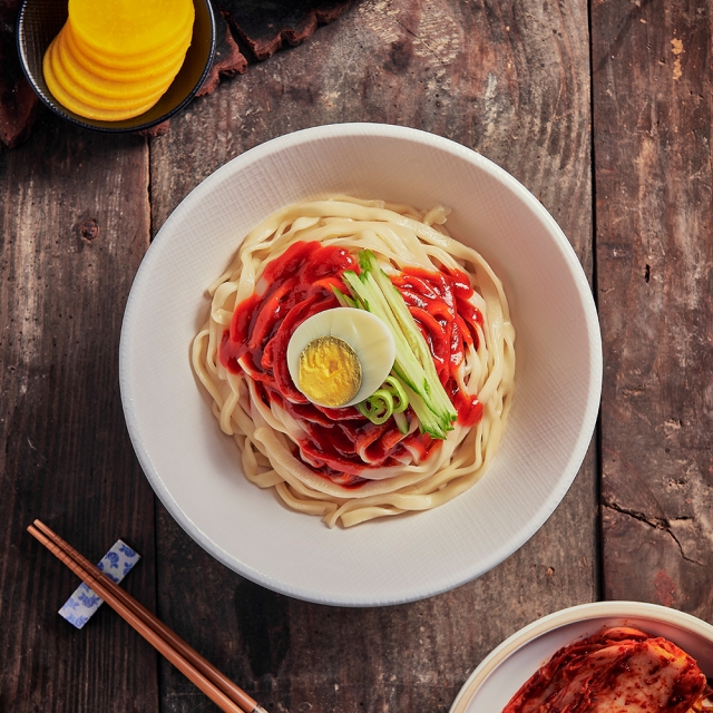 쫄깃한 면발에 매콤달콤한 양념이 어우러진 군산엄마손 비빔칼국수