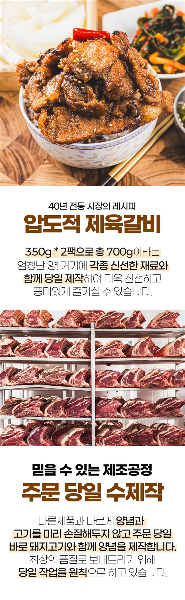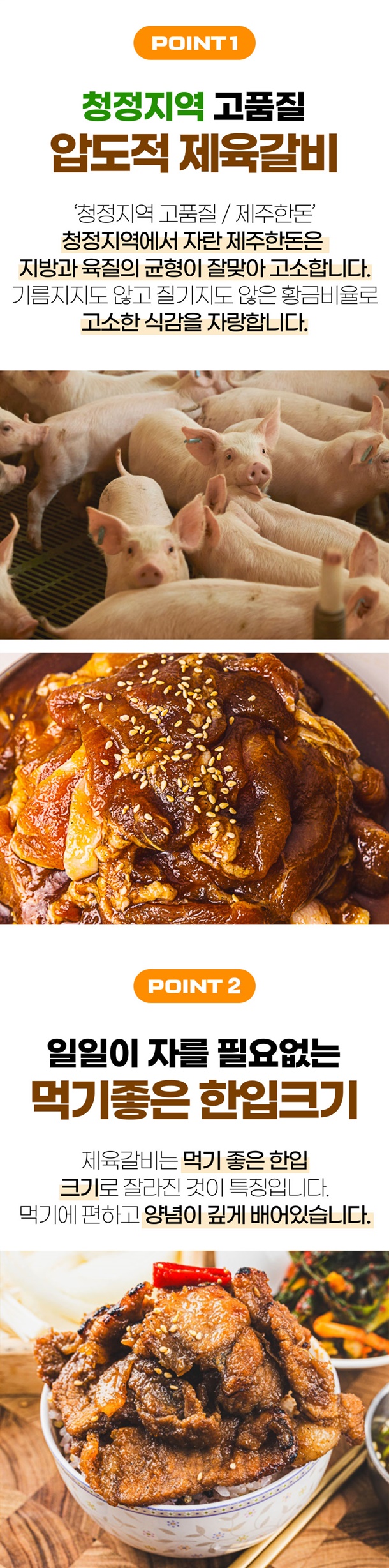 제주한돈으로 만든 수제 제육갈비로 매콤달콤한 양념과 부드러운 육질이 매력적